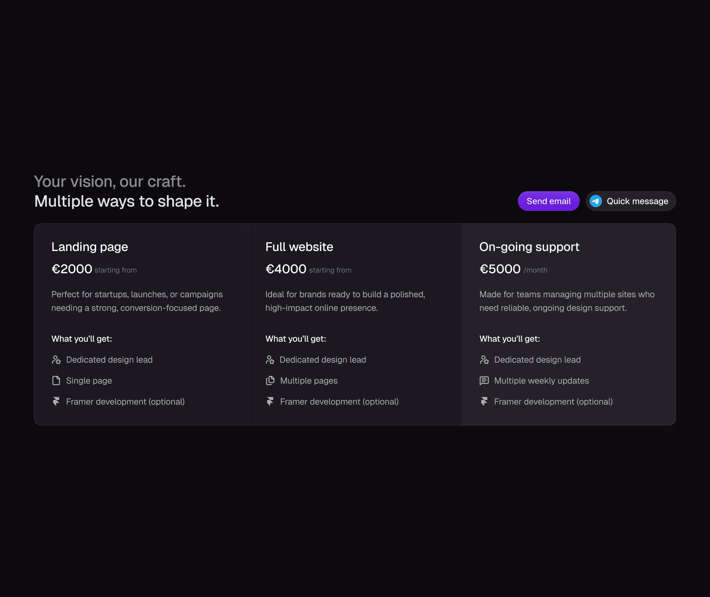I help companies and founders design websites and digital products that people love to use. From early ideas to polished products, I work closely with teams to turn vision into something real and enjoyable to use.
